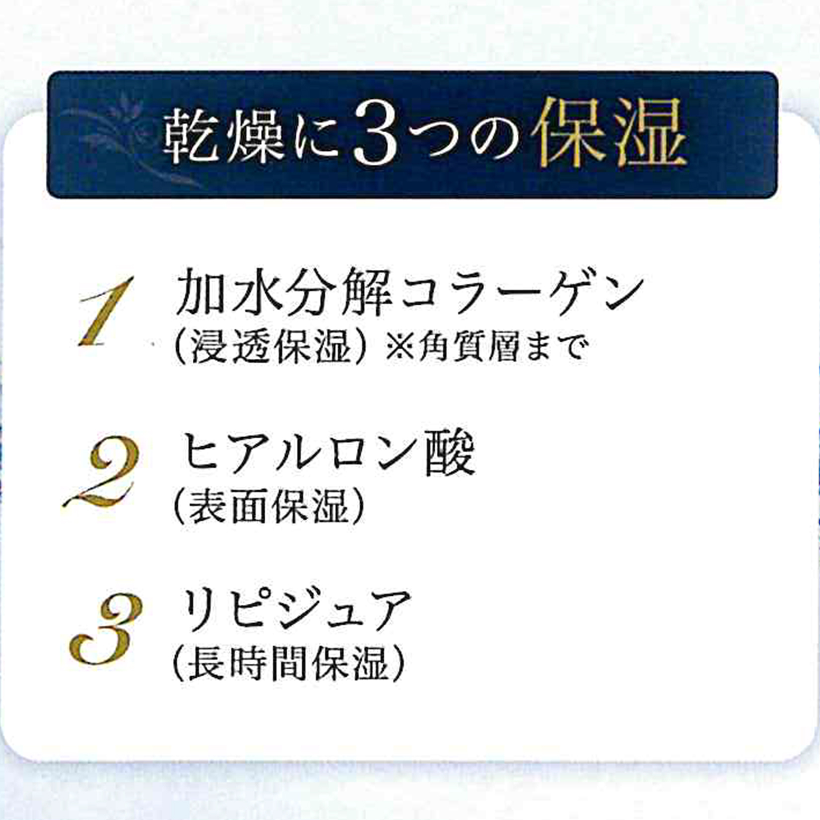 コラーゲンを限界値まで配合し、さらにヒアルロン酸・リピジュアも贅沢に使用しています。