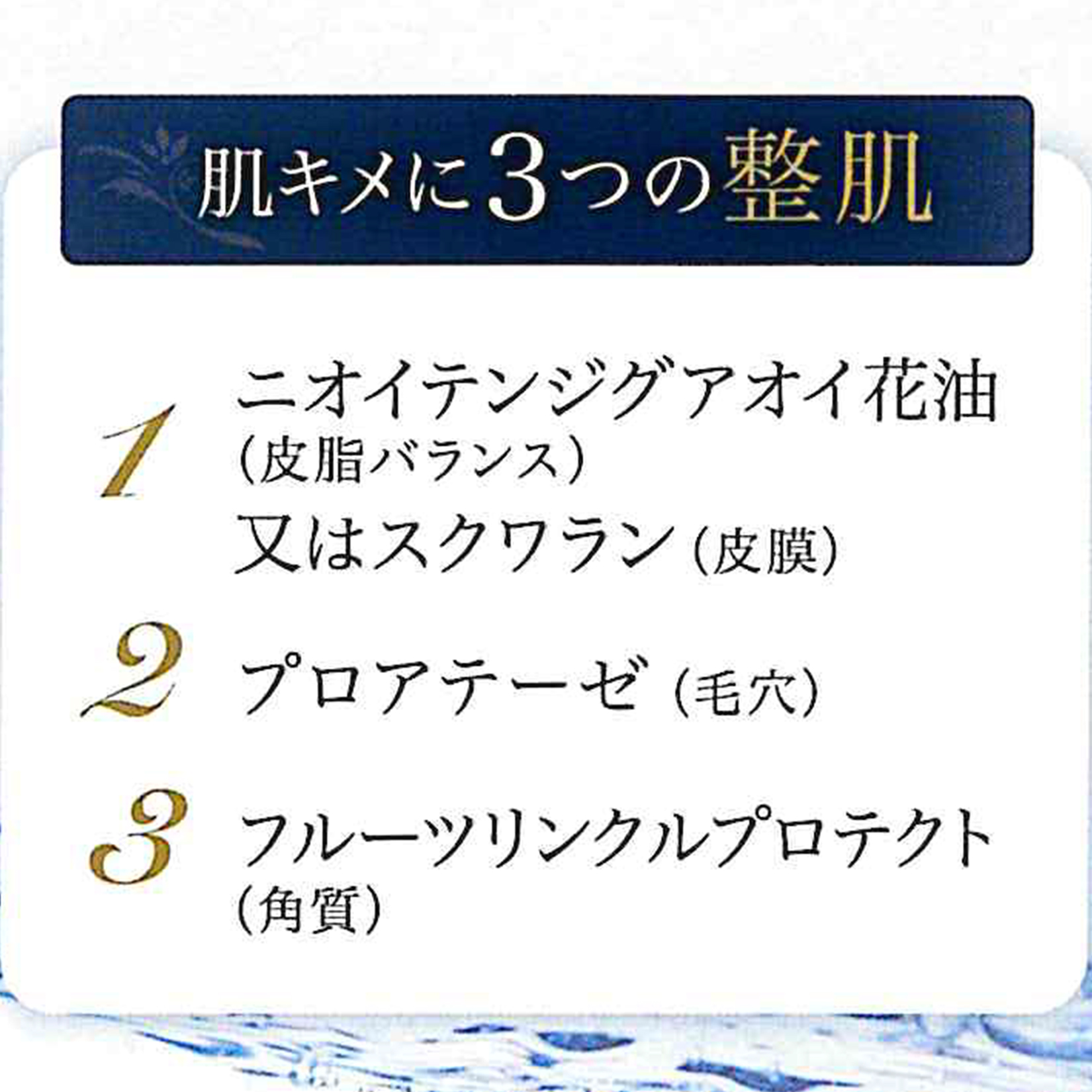 優れた保湿成分との相乗作用で石鹸特有のツッパリ感を無くし、しっとりつるつるとした柔らかくしなやかな素肌へ導きます。
