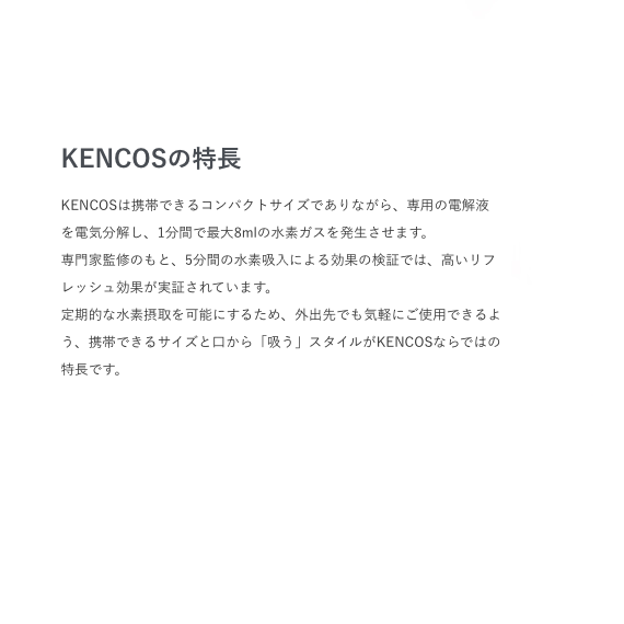 KENCOSは効率よく、短時間でダイレクトに水素が摂り入れられます。