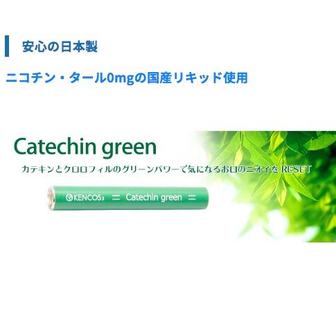 ニコチンやタールなどの有害物質を含まない、カテキンとクロロフィルを含むピュアでクリアな蒸気を吸うことができます。