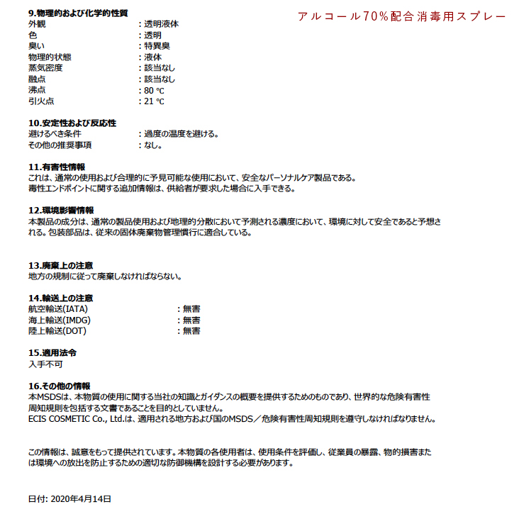 ・広範囲のウイルス細菌に効く、濃度70%のアルコールで手指をしっかり消毒、洗浄。