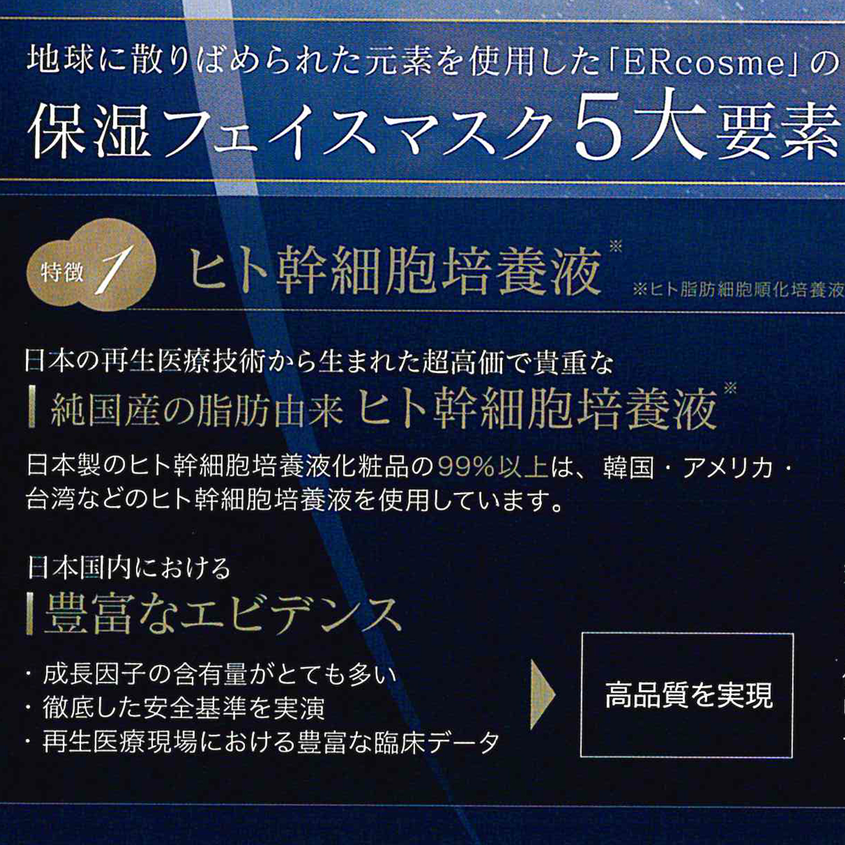 日本の再生医療技術から生まれた超高価で貴重な純国産の脂肪由来ヒト幹細胞培養液を使用したフェイスパックです。