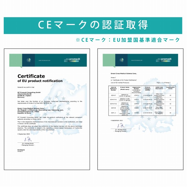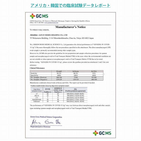 海外製薬大手のGCMS社は、先日の経済ニュースでも新型コロナウイルスの治療薬である血漿製剤「GC5131A」を開発し、第2相臨床まで終了させた会社で新型コロナウイルスの治療薬を開発した会社が作った信頼できる検査キットが本品なのです。
